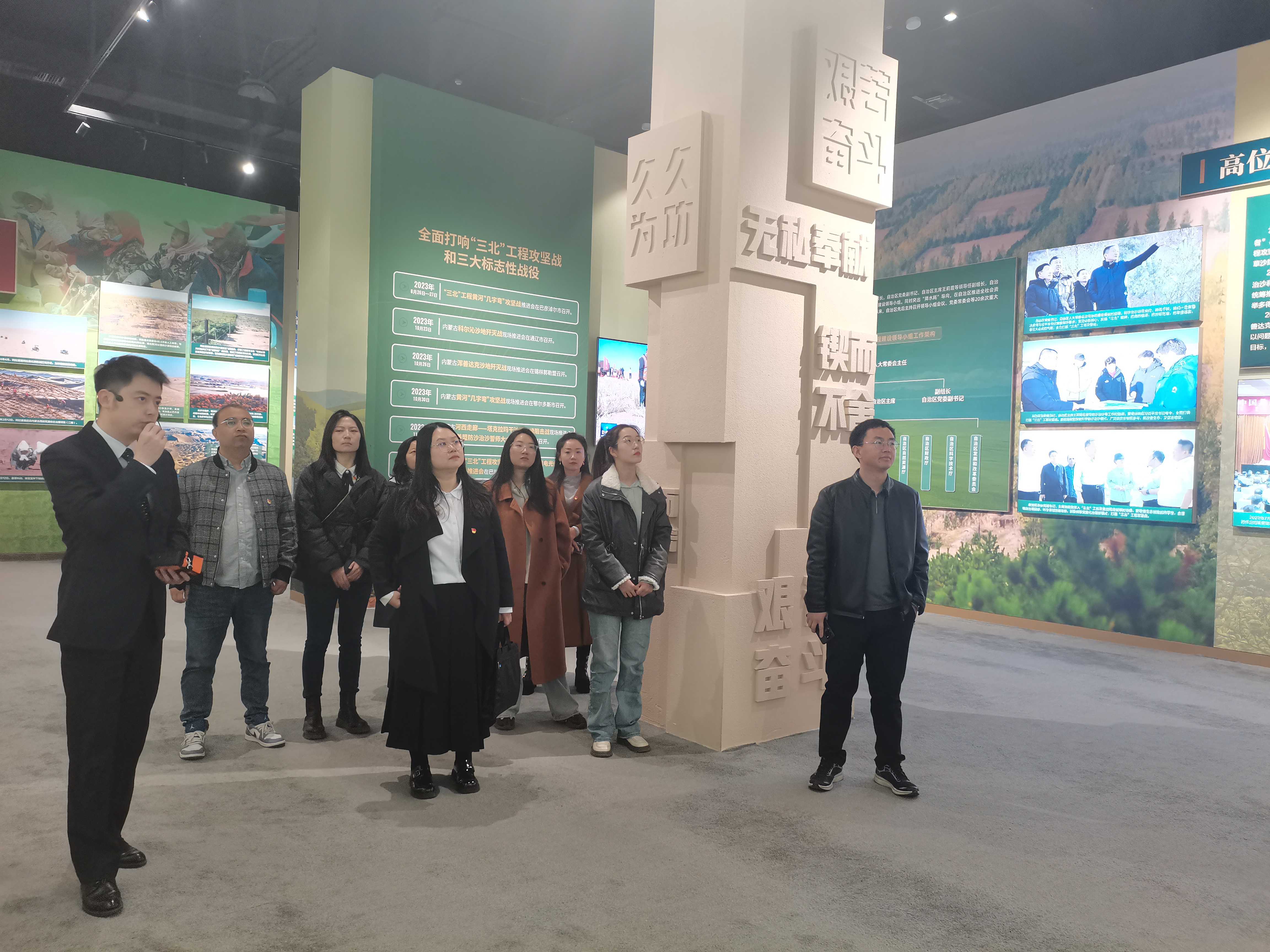 为深入贯彻习近平生态文明思想,践行绿色发展理念,近日,自治区生态环境督察技术支持中心党支部赴内蒙古自治区展览馆开展“筑牢绿色长城 书写生态奇迹”主题党日活动,充分感受内蒙古在防沙治沙及“三北”工程中的生态治理成果。