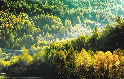 内蒙古拥有我国最大的天然林区,集中分布于大兴安岭、燕山北部、阴山及贺兰山等山地,面积约25万平方公里。主要类型为由兴安落叶松、樟子松和青海云杉等组成的寒温性针叶林;由油松、杜松等组成的温性针叶林;由白桦、黑桦、山杨、蒙古栎等组成的夏绿阔叶林。其中大兴安岭分布有我国面积最大的寒温性针叶林,燕山北部山地—阴山—贺兰山是我国天然油松林分布的北界。森林生态系统不仅抚育了内蒙古80%以上的动植物类群,还承载着涵养水源、保持水土、防风固沙、调节气候、净化空气、休闲旅游等多重生态系统服务功能,更是内蒙古最大的有机碳库。