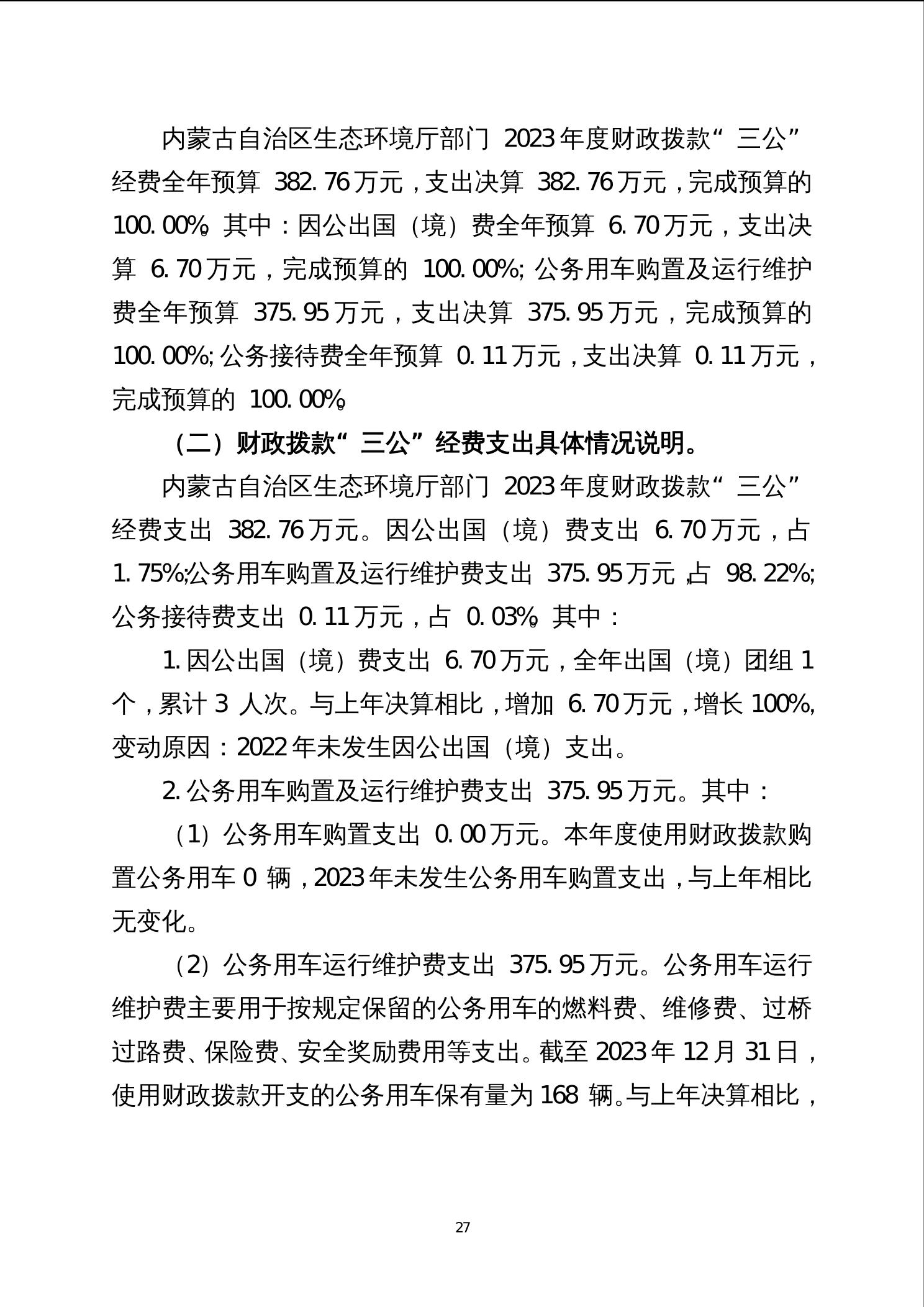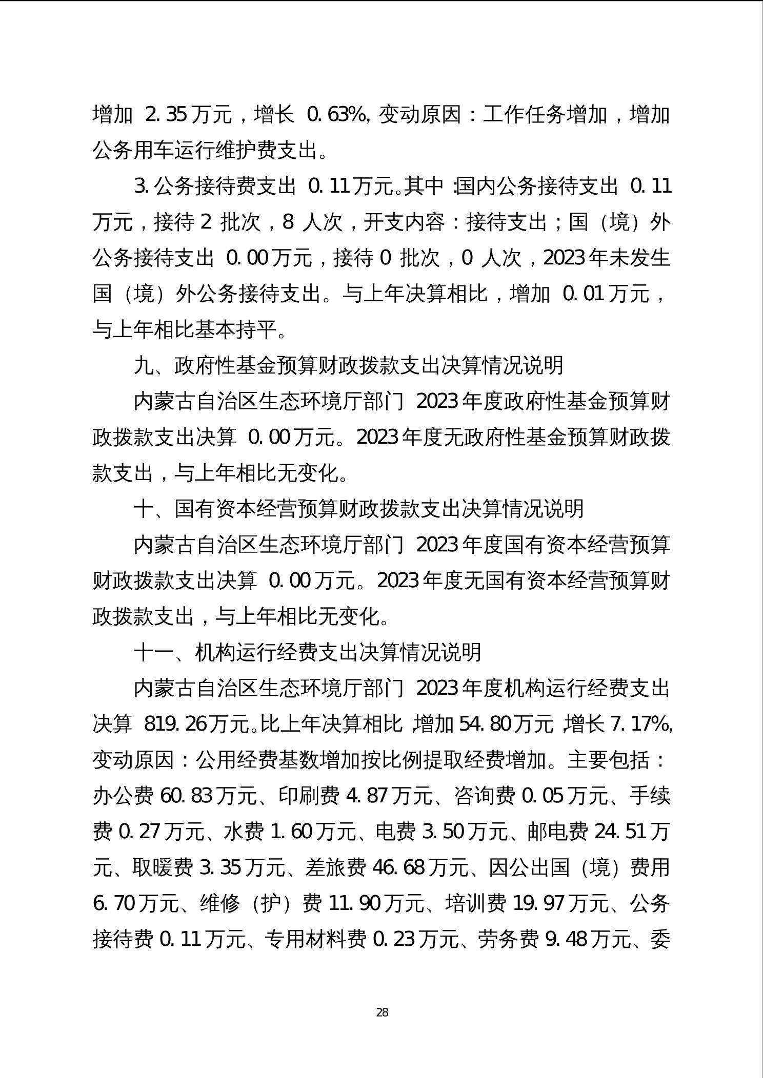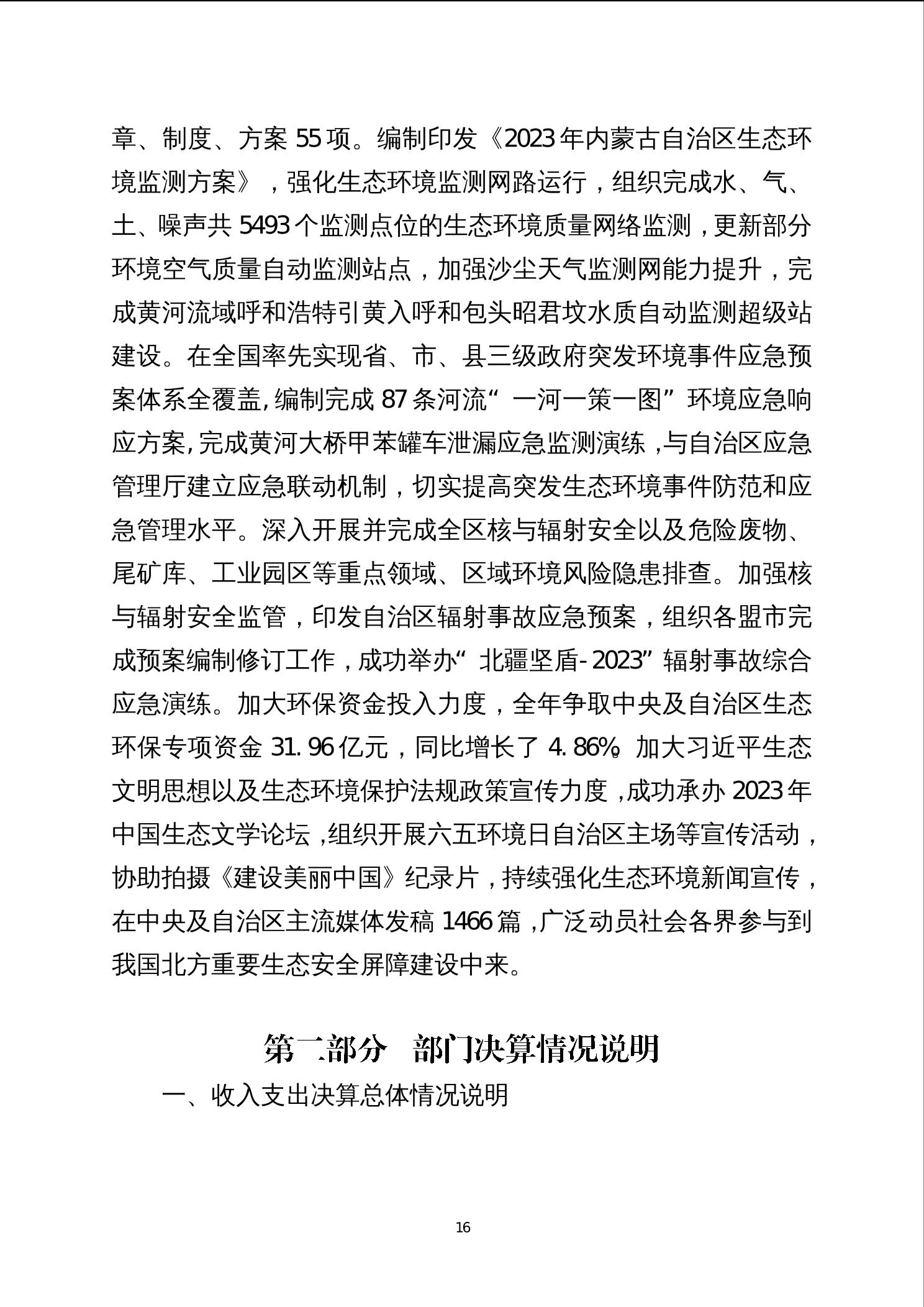 2023年度内蒙古自治区生态环境厅部门决算公开报告、“三公”经费决算统计数公开情况说明