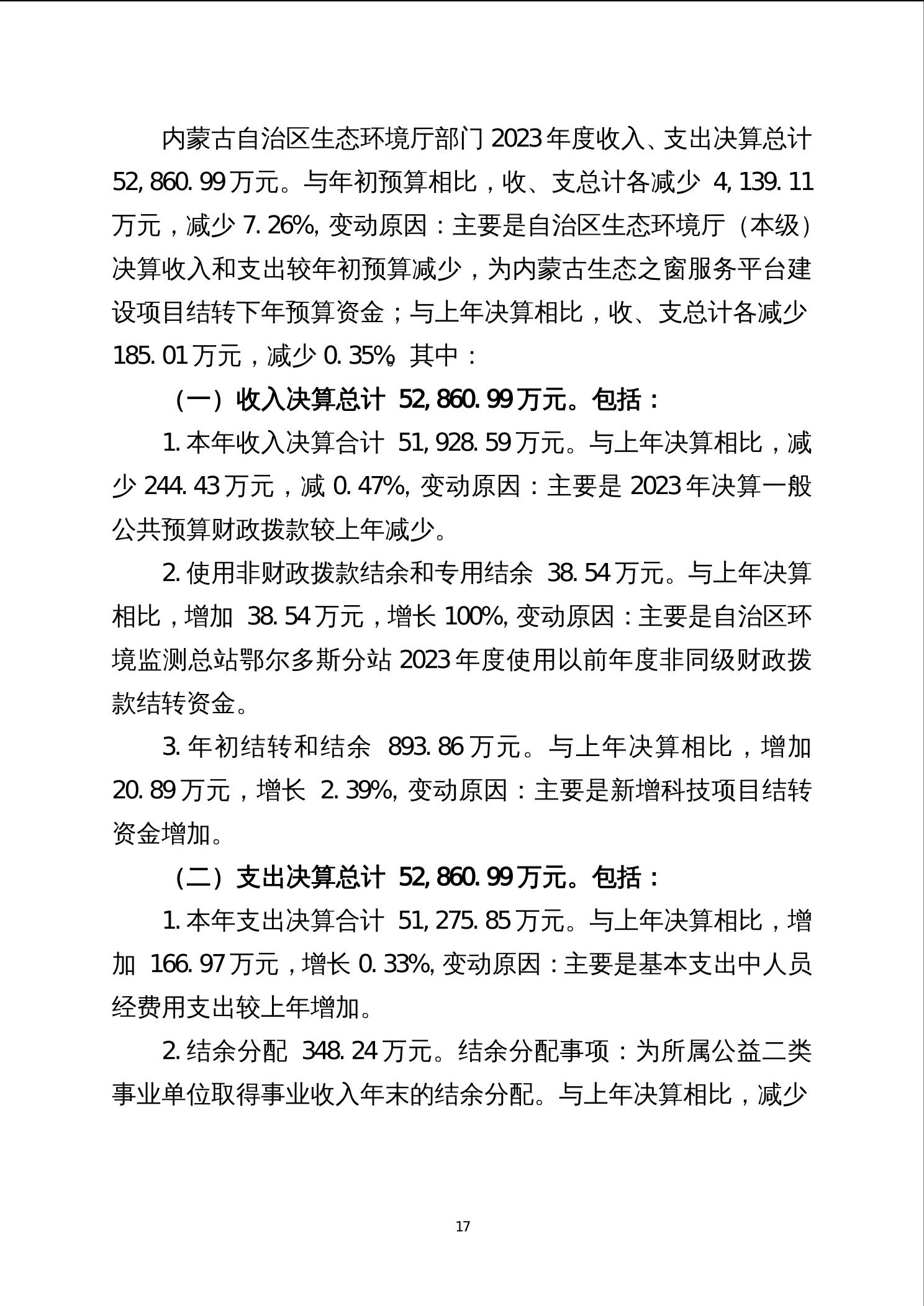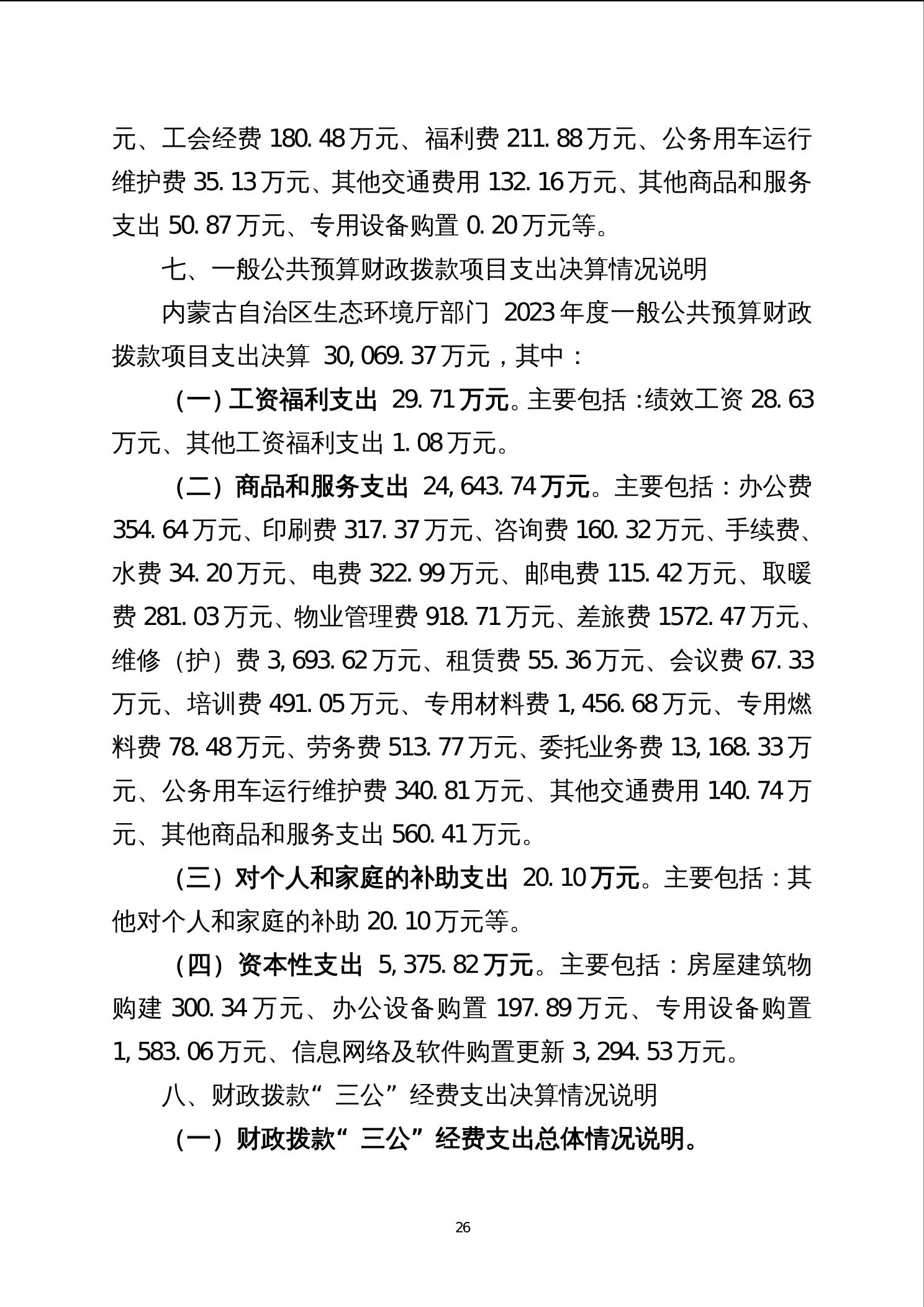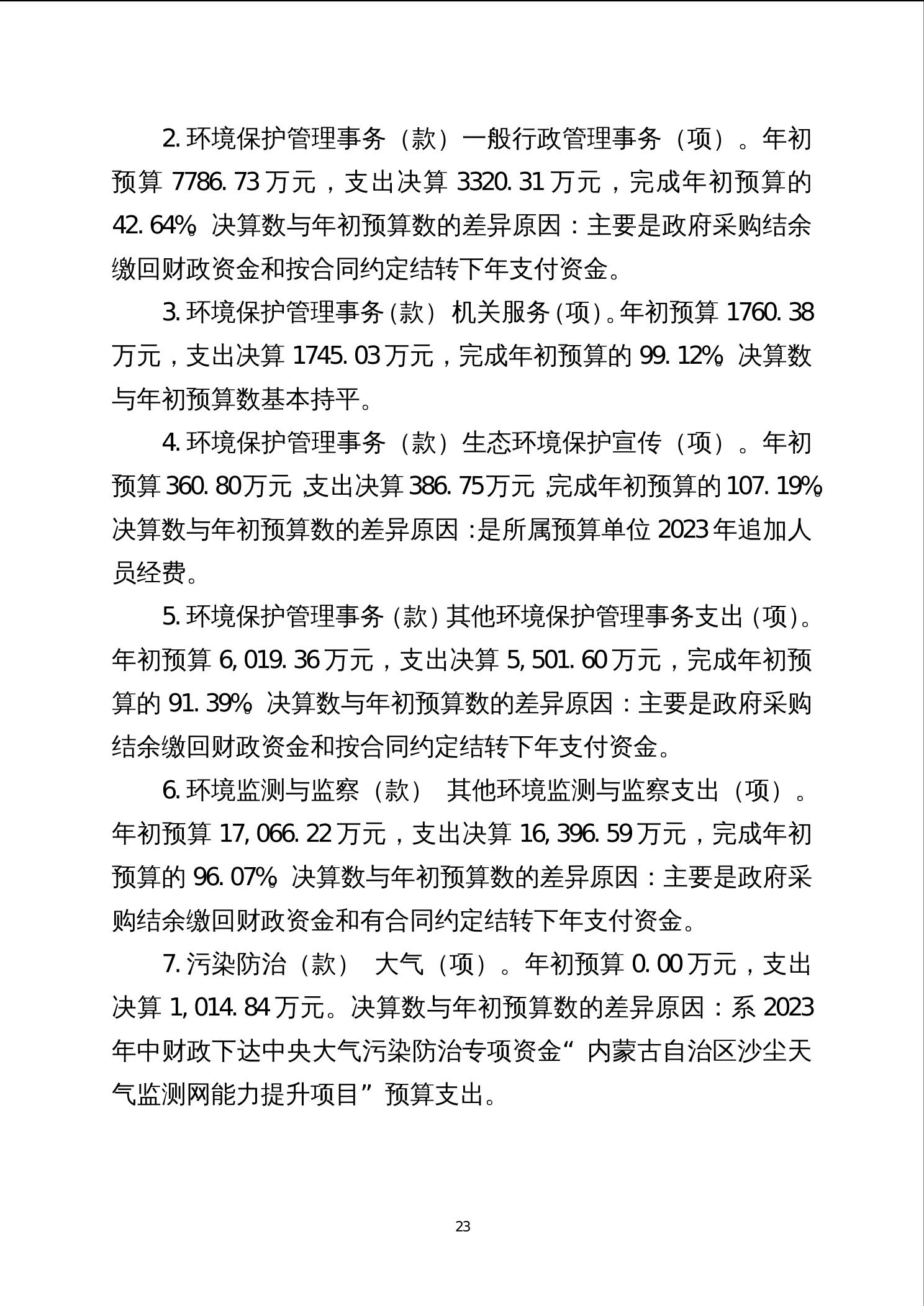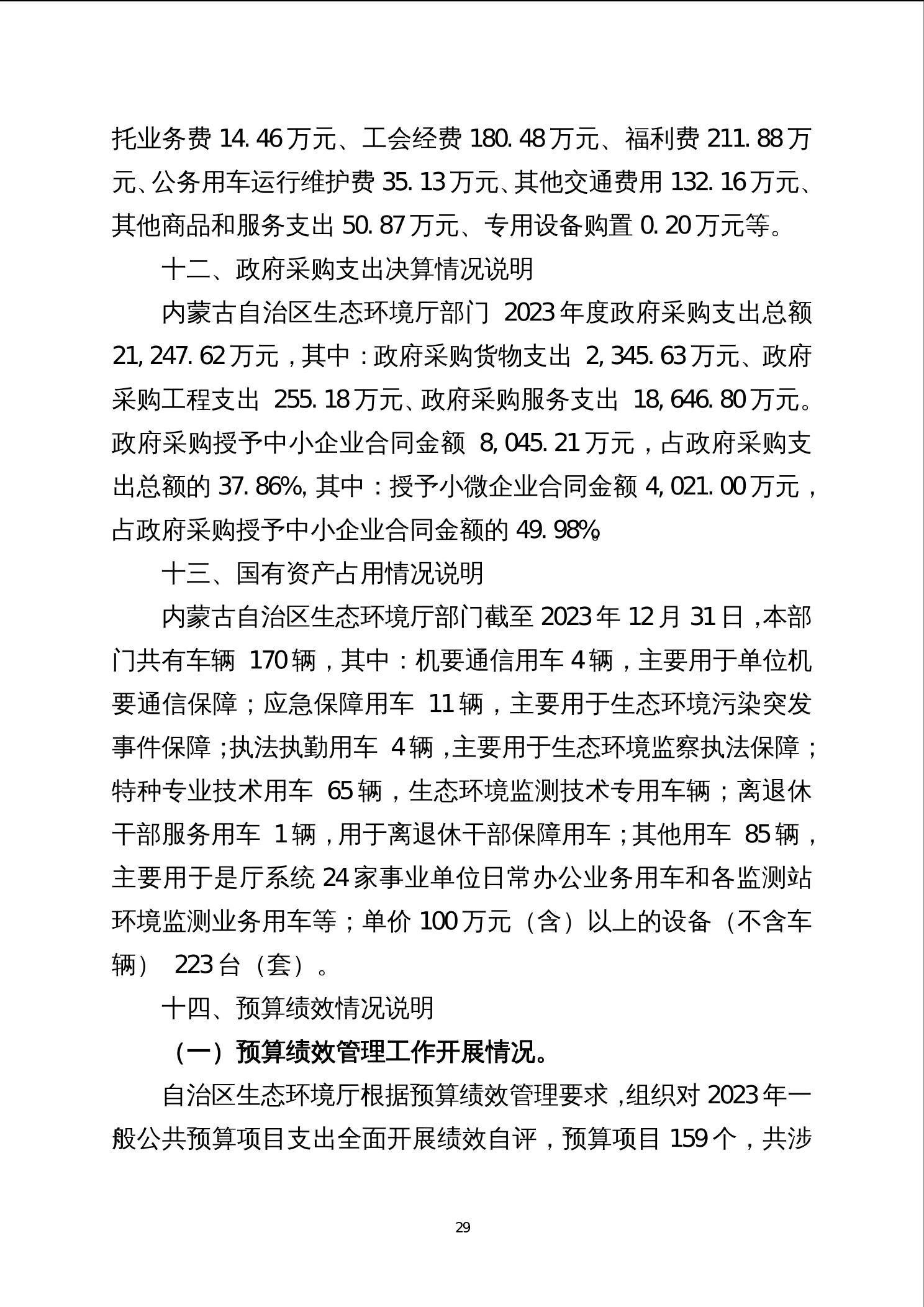 2023年度内蒙古自治区生态环境厅部门决算公开报告、“三公”经费决算统计数公开情况说明