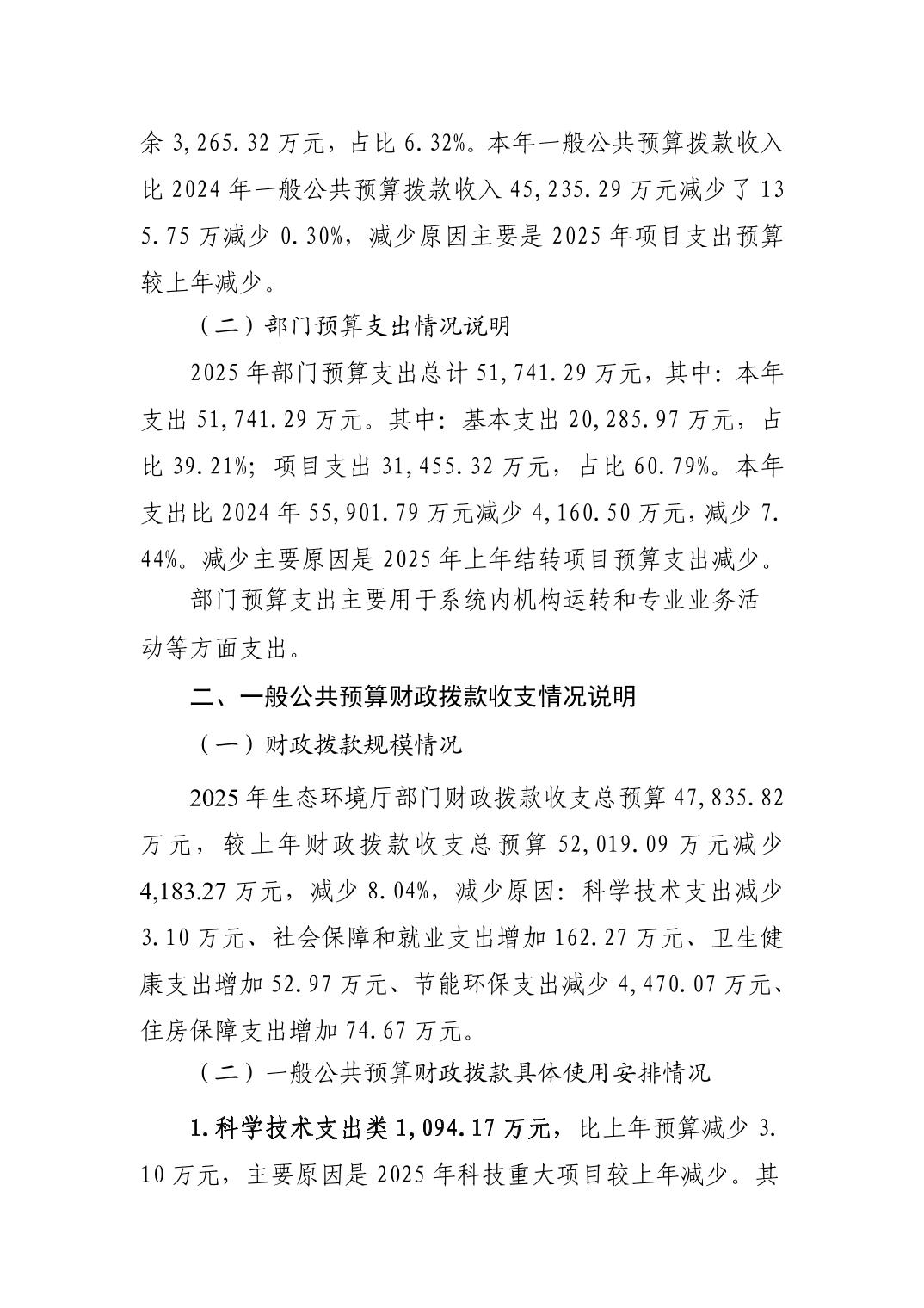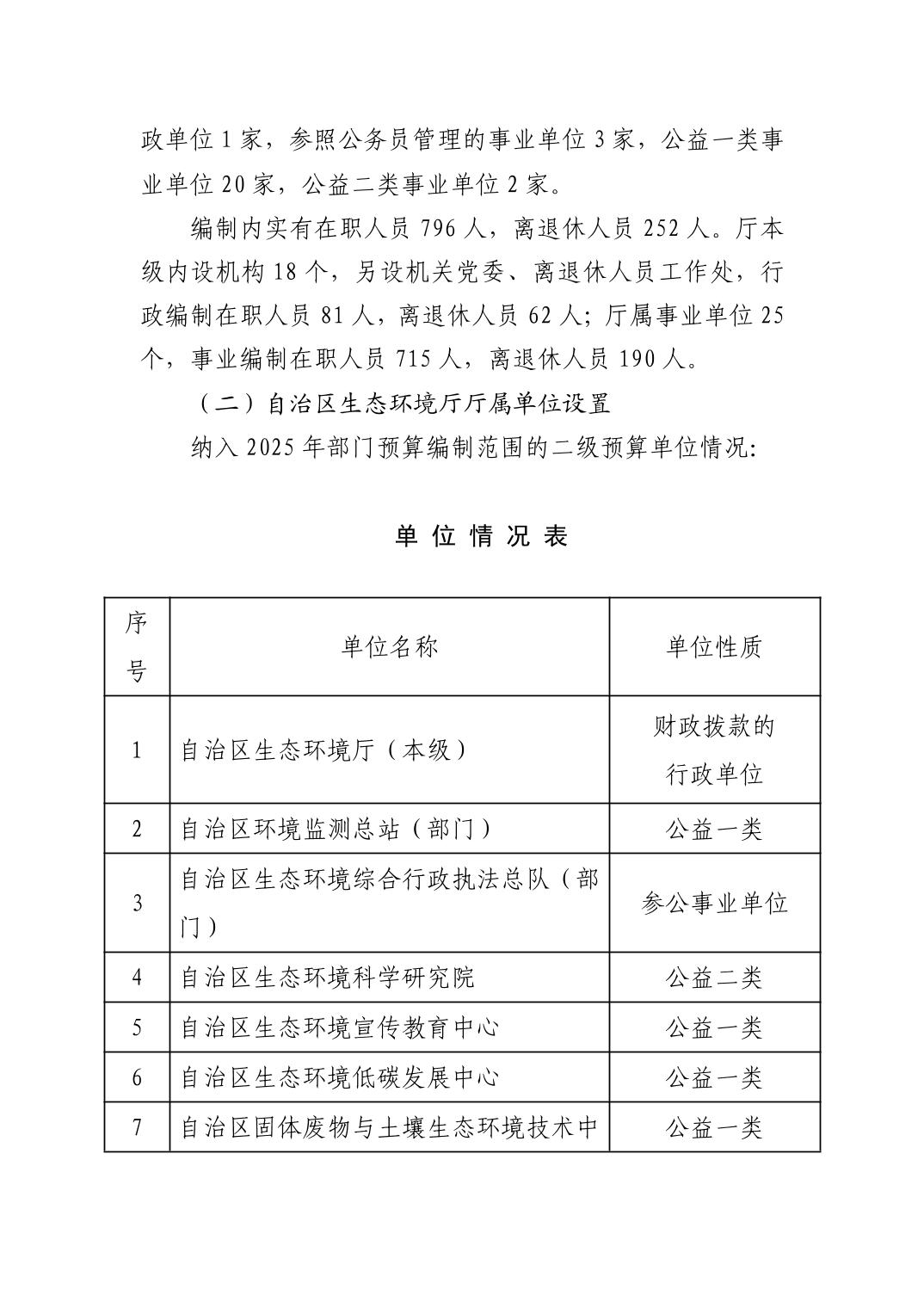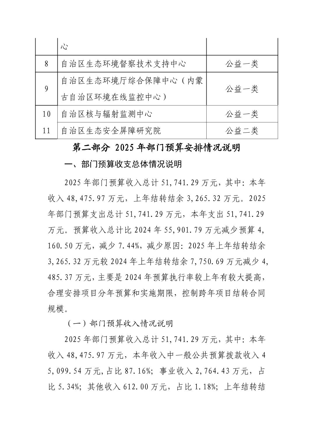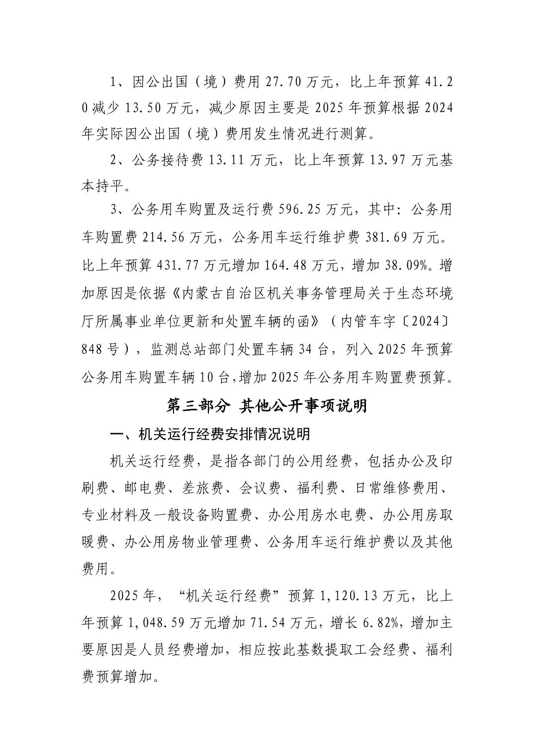 内蒙古自治区生态环境厅2025年部门预算公开报告、“三公”经费预算统计数公开情况说明