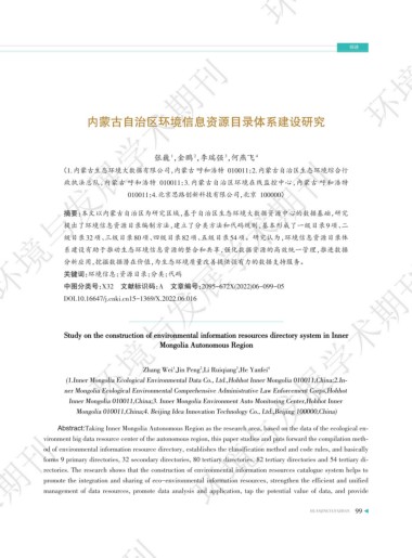 内蒙古自治区环境信息资源目录体系建设研究 ߌაؿᅚ࿐ඌ௹़