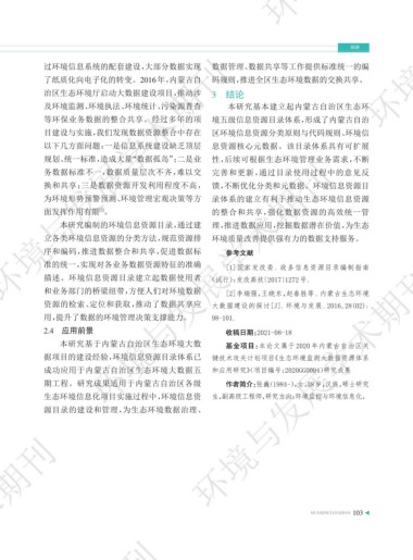 本研究编制的环境信息资源目录,通过建 理,推进数据应用,挖掘数据潜在价值,为生态