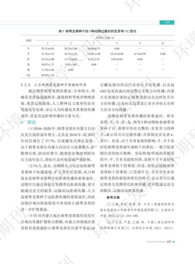 (1)2016-2020年,刺萼龙葵在内蒙古自治 葵种子后,粪便中均有完整的、有发芽力的种