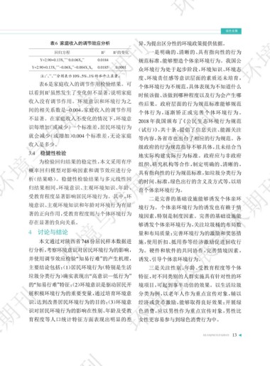 表6 家庭收入的调节效应分析 异,为提出区分性的环境政策提供依据。