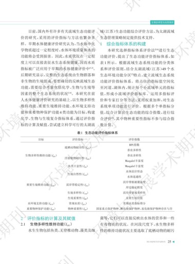 功能将会受到损害。因此,水质状况在一定程 功能评价,提出了生态功能评价指标体系,如