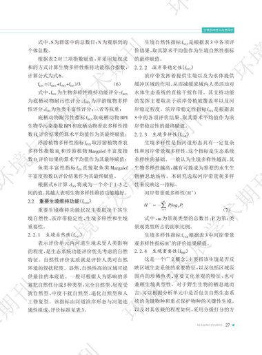 为底栖动物耐污性评分;f PHY 为浮游植物多样 的发挥主要取决于滨岸带植被覆盖率以及河