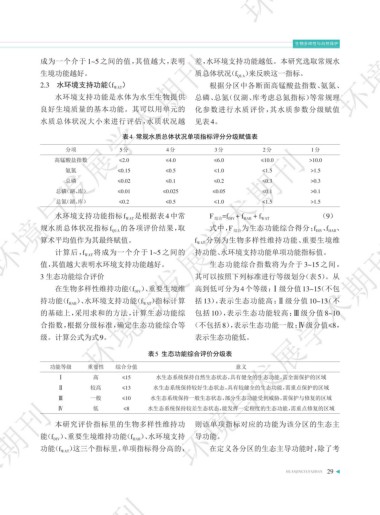 持功能(f )、水环境支持功能(f )指标计算 括 13),表示生态功能高;Ⅱ级分值 10~13(不