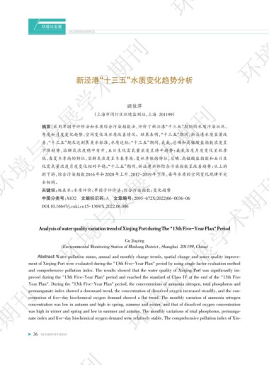新泾港“十三五”水质变化趋势分析 ߌაؿᅚ࿐ඌ௹़