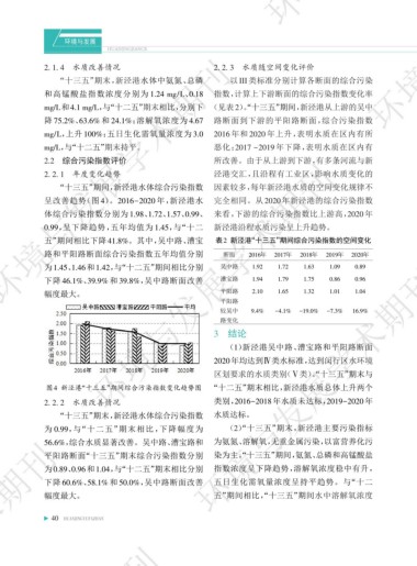 五”期间相比下降 41.8%。其中,吴中路、漕宝 表2 新泾港“十三五”期间综合污染指数的空间变化