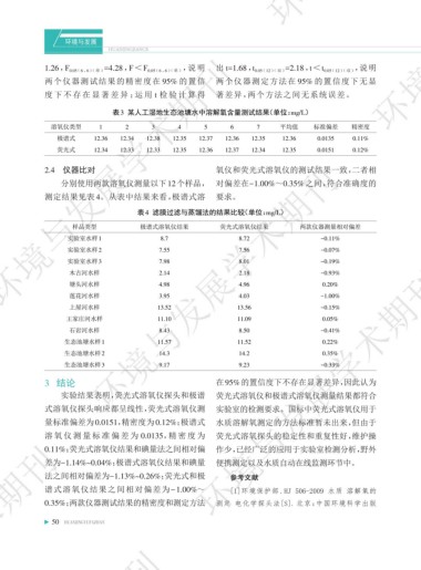 0.11%;荧光式溶氧仪结果和碘量法之间相对偏 作少,已经广泛的应用于实验室检测分析,野外