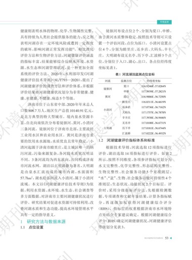 系统的评价方法。2020 年,水利部印发《河湖 表1 河流湖泊监测点位坐标