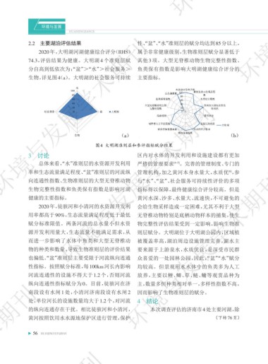 2020年,大明湖河湖健康综合评分(RHS) 属于非常健康级别,生物准则层赋分显著低于