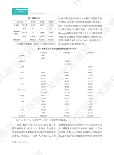 模型选择 随机效应 固定效应 固定效应 模型 2 和模型 3 的 P 值小于 0.01,拒绝原假设,