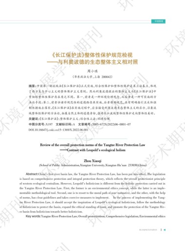 tze River Protection Law, it should accept the inspiration of Leopold's ecological holisticism, follow the methodology