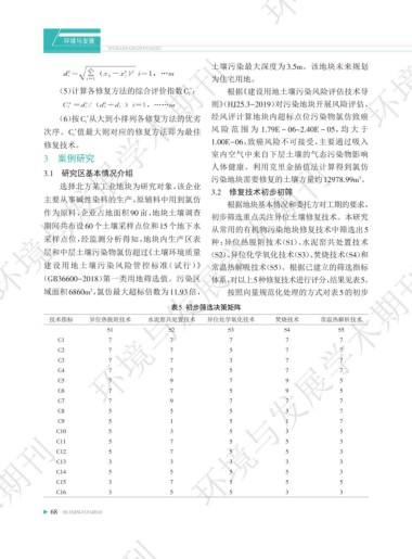 (5)计算各修复方法的综合评价指数C : 根据《建设用地土壤污染风险评估技术导