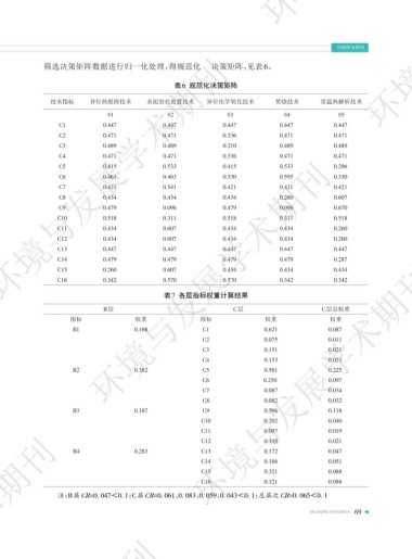 筛选决策矩阵数据进行归一化处理,得规范化 决策矩阵,见表6。