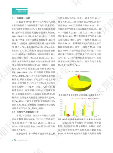 2.1 总体统计结果 天数比例为 78.7%。其中,一级优占 23.8%,二