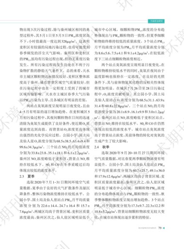 量数据,夏季由于良好的天气扩散条件及湿沉 明显低于城市中心区域。细颗粒物 PM 浓度