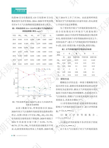 表1 呼和浩特市2014-2020年主要大气污染物年均 为了更好的开展大气环境质量客观评价, ߌაؿᅚ࿐ඌ௹़