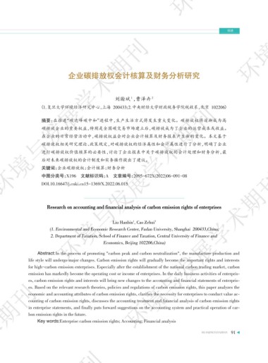 企业碳排放权会计核算及财务分析研究 ߌაؿᅚ࿐ඌ௹़