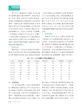 分析,总结沙尘过程中包头市污染特征、天气 大范围沙尘天气过程(相关城市AQI见表1),包